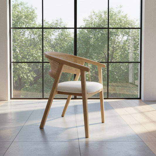 Viggo Sungkai Wood Rattan Dining Chair with Off White Seater