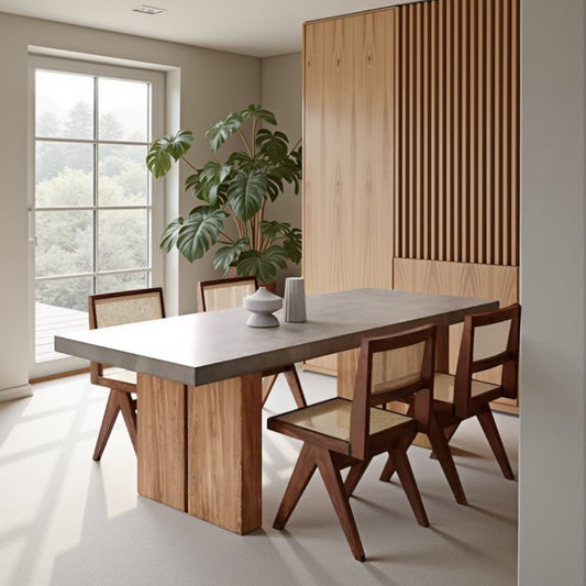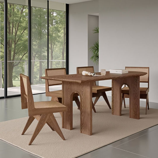 Nora Ash Wood Japanese Wabi-Sabi Style Dining Table Set
