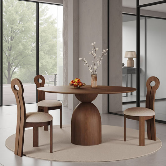 Hilda Retro Walnut Solid Wood Round Dining Table Set