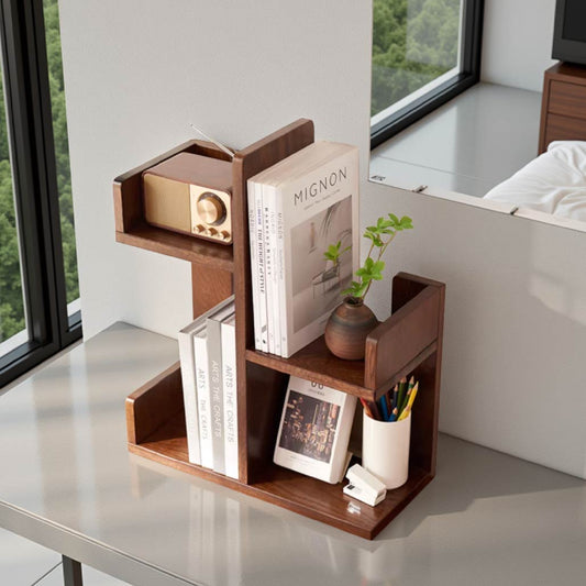 Petra Oak Wood Desktop Bookshelf Orgainiser