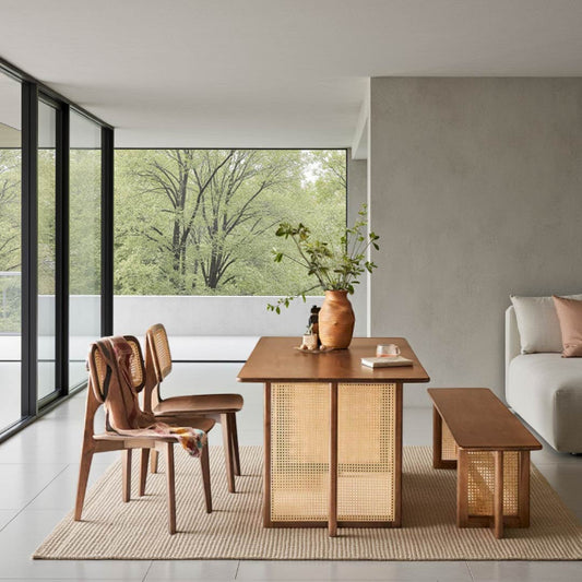 Kaia Japanese-Style Solid Wood Rattan Dining Table Set