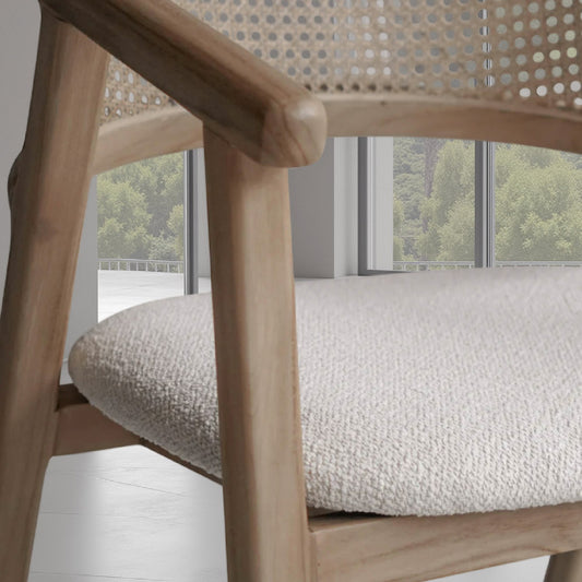 Viggo Sungkai Wood Rattan Dining Chair with Off White Seater