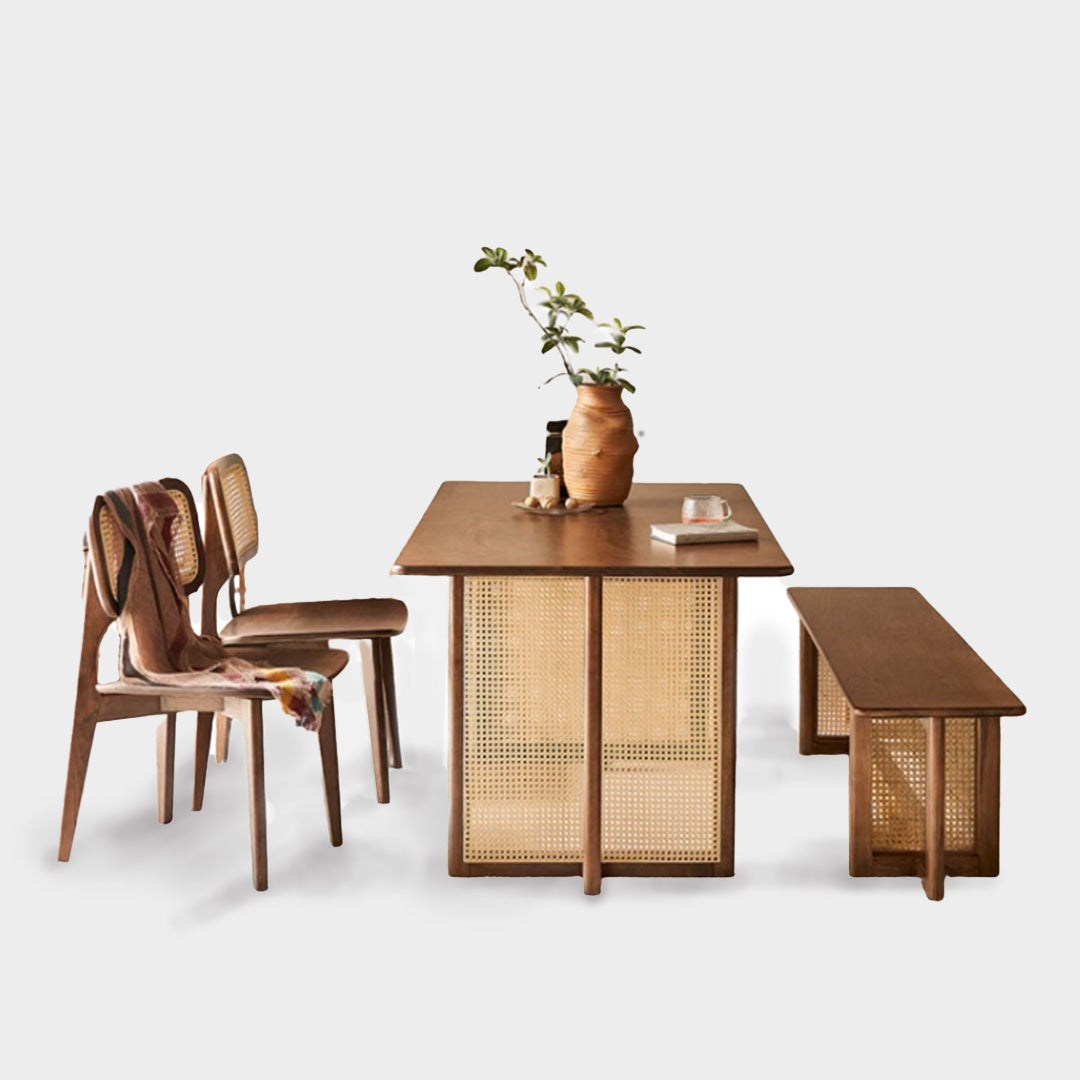 Kaia Japanese-Style Solid Wood Rattan Dining Table